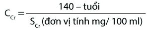 CCr là độ thanh thải creatinin tính cho 70 kg thể trọng hoặc 1,73 m diện tích bề mặt cơ thể. Nếu chỉ có giá trị nồng độ creatinin huyết tương (SCr), giá trị CCr có thể được ước tính theo công thức sau
