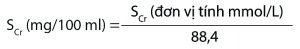 Nếu số liệu SCr tính theo mmol/L, cần quy đổi về đơn vị mg /100 ml theo công thức sau![]()