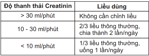 + Nhiễm khuẩn nặng: 40 mg/kg cân nặng/ngày, chia thành 3 lần/ngày, uống trong 5 ngày.
