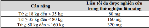 Liều khởi đầu là 40 mg x 1 lần/ ngày cho trẻ em dưới 35 kg và 80 mg x 1 lần/ ngày cho trẻ em từ 35 kg trở lên. Hiệu chỉnh liều dựa trên đáp ứng huyết áp. Liều tối đa được thể hiện trong bảng sau.