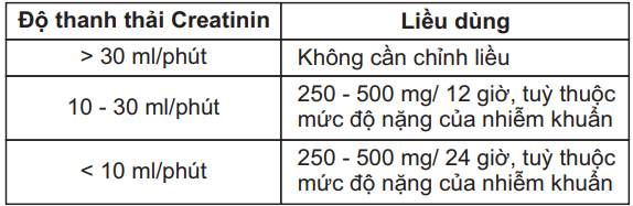 + Nhiễm khuẩn nặng: 40 mg/kg cân nặng/ngày, chia thành 3 lần/ngày, uống trong 5 ngày.