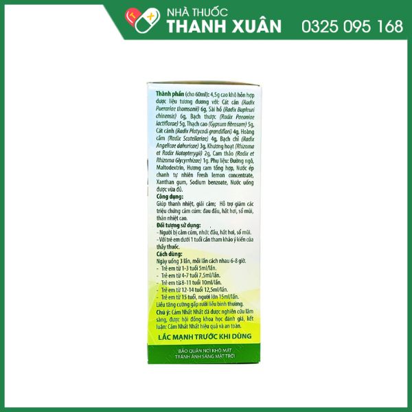 1. Thành phần sản phẩm Siro cảm Nhất Nhất