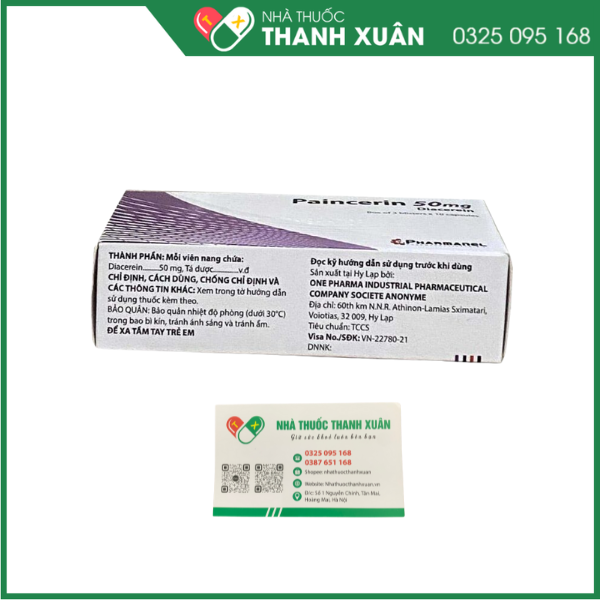 Thuốc Paincerin là sản phẩm của Pharmanel, có thành phần chính là Diacerein. Đây là thuốc được sử dụng để điều trị triệu chứng cho các bệnh nhân thoái hóa khớp hông hoặc gối.